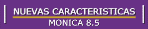 MONICA 8.5 para Windows trae mas de 30 adiciones, entre ellas podemos ver: ..... Calculo de comisión para vendedores. · Ahora es posible definir hasta tres diferentes tipos de facturas, por ejemplo Ud. puede definir una Factura, Crédito fiscal, recibo. · Módulo contable ahora está integrado de una manera más eficiente al resto de módulos. · Copias de respaldo automáticas. · Etiquetas para los artículos del inventario. · Productos ahora pueden ser definidos como físicos, servicios, ocasionales · Contabilidad ha sido mejorada y se tiene mayor numero de reportes financieros. · Cuentas por cobrar ahora permite pago por Nº de Factura, cliente. Puede exportar datos a otros paquetes: Lista de precios, clientes en formato ASCII, Excel, Lotus. · Es más rápido de trabajar en redes Novell y Microsoft · Punto de venta ahora permite mayor cantidad de impresora de recibos, gavetas de dinero. · Se han agregado mayor cantidad de reportes, y mejor funcionalidad en el uso del programa, con más de 20 sugerencias dadas por nuestros usuarios.